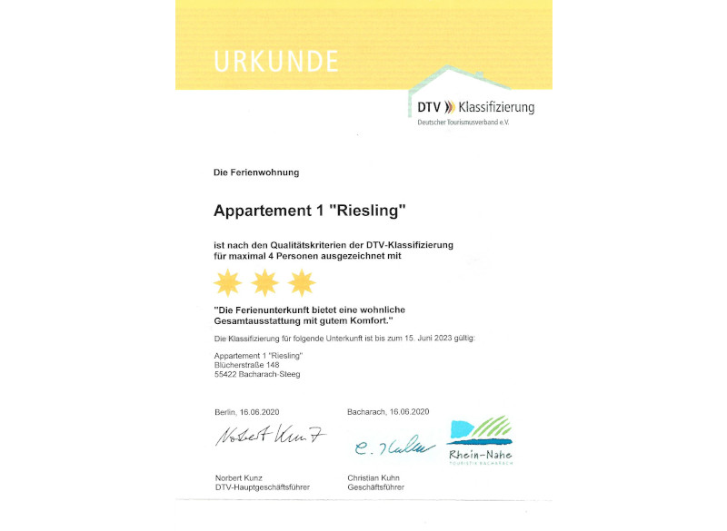 Extra-Service: In jeder Wohnung halten wir eine Auswahl an Weinen aus Bacharach für Sie bereit.